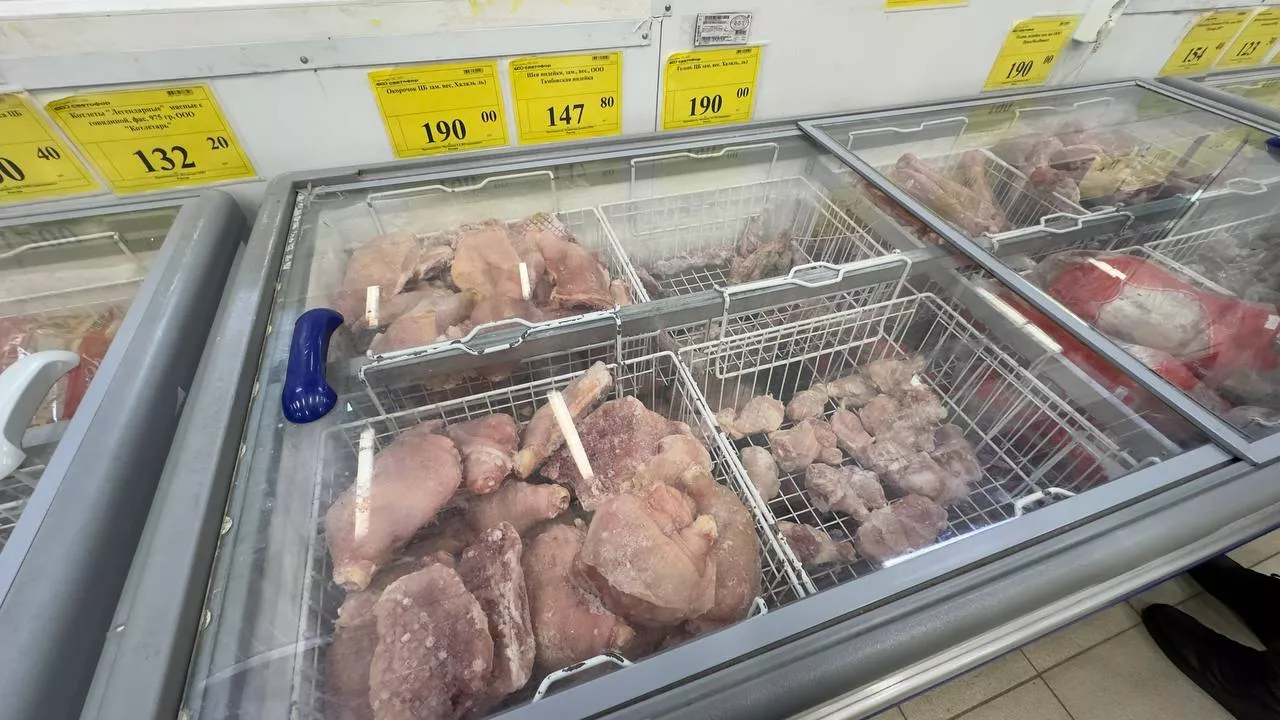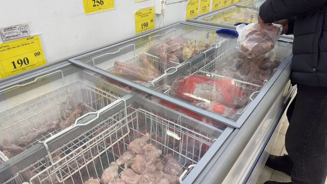 Такие же вопросы и к замороженному мясу. Хоть оно и лежит в холодильниках, но нигде нет ни перчаток, ни лопаток, чтобы это мясо наложить в пакеты.