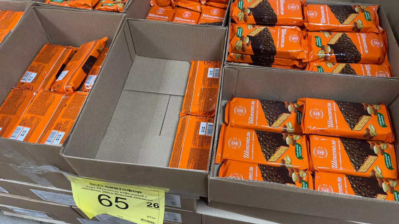 Начну с шоколадных вафель. Они всегда хрустят так, как я люблю, а тонкий слой шоколада сверху делает их идеальной сладкой закуской к чаю. Цена приятно радует — 124 рубля за 600 грамм.
