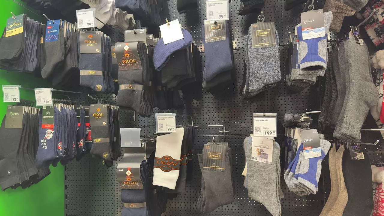 Но это была только малая часть ассортимента. Чуть дальше располагалась целая стена мужских носков: тёплых, классических, сдержанных, полосатых, новогодних, спортивных.