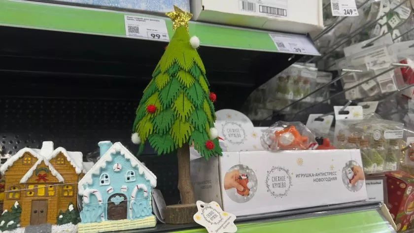 Конечно, нельзя забыть и про главный символ. Такая небольшая фетровая ёлка подойдет для создания новогоднего настроения в офисе или для дополнительного украшения квартиры. Также в магазине продаются небольшие искуственные елки.