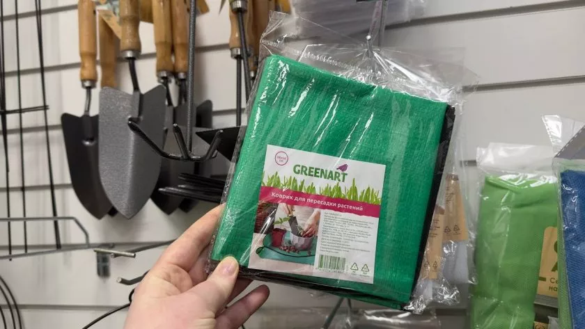 Чуть дальше обнаружились коврики для пересадки растений. Раньше многие обходили их стороной, считая бесполезной мелочью, но при ближайшем рассмотрении стало понятно, насколько это удобная вещь. Они помогают сохранить порядок на столе или земле и заметно упрощают работу с рассадой.