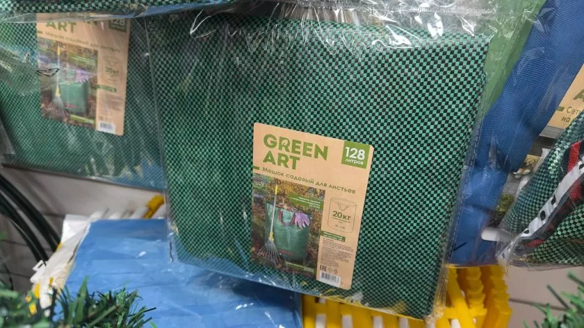 Практичным приобретением стал и вместительный садовый мешок на 20 килограммов. Для владельцев участков это настоящая находка: весной туда отправляется старая ботва, осенью — листья и обрезки. За один раз можно убрать внушительный объём мусора, не таскаясь с ведрами по всему участку.
