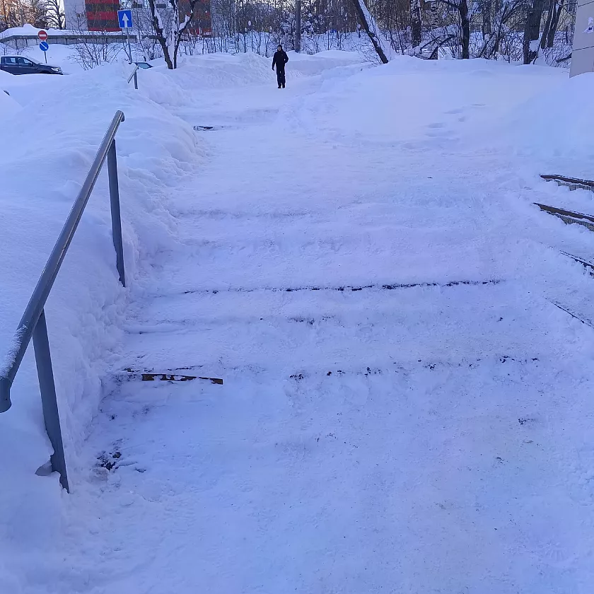 Несмотря на жалобы, коммунальщики заваливают те места, где я работала. По городу невозможно передвигаться с коляской. Ширина между колесами больше, чем ширина очищенного тротуара. Поэтому сама организую горки, так как пока доберусь до общественной, уже можно ехать домой. Ни один дворник не чистит эти лестницы. Что делать обычному человеку?