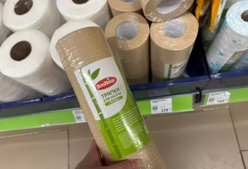 Среди более привычных товаров внимание привлекли бамбуковые салфетки для уборки. Они не царапают поверхности и, по заявлениям производителей, обладают антибактериальными свойствами — полезная вещь для любой кухни.