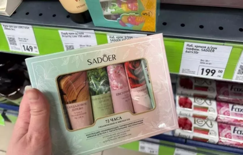 Дальше на полке обнаружился набор кремов для рук. 6 маленьких баночек, и у каждой свой запах. Есть цветочный, есть с сандаловым деревом, терпкой розой и даже чайный. Очень удобно для подарка коллегам — можно разобрать по ароматам или подарить целиком.