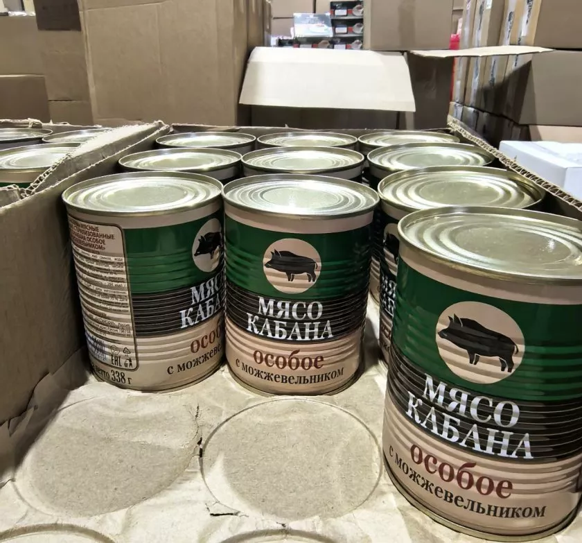 Самое необычное, что попалось на глаза — консервированное мясо кабана. Взяла ради интереса, попробовать что-то новое. Посмотрим, какие ощущения будут.