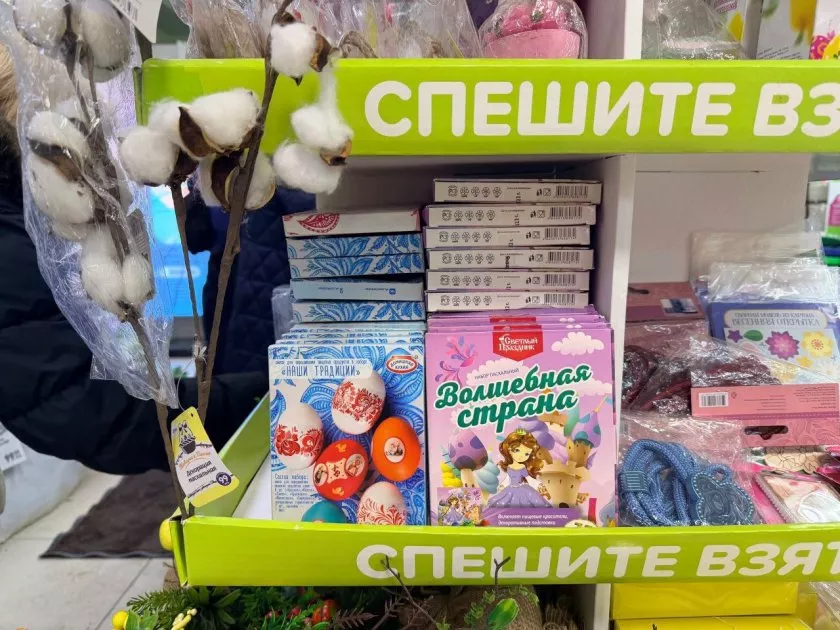 Особо хочу отметить огромный ассортимент смесей для окрашивания пищевых продуктов. Это готовое решение для тех, кто хочет придать своим пасхальным яйцам неповторимый вид. Стоимость этих чудесных смесей – от 87 рублей.