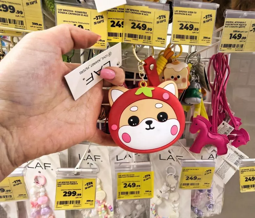 Сразу привлекли внимание брелоки – их там оказалось очень много. Кошельки, конечно, выглядят стильно и наверняка порадуют модниц, но вот перед брелоками в виде собачек даже взрослые не устоят.