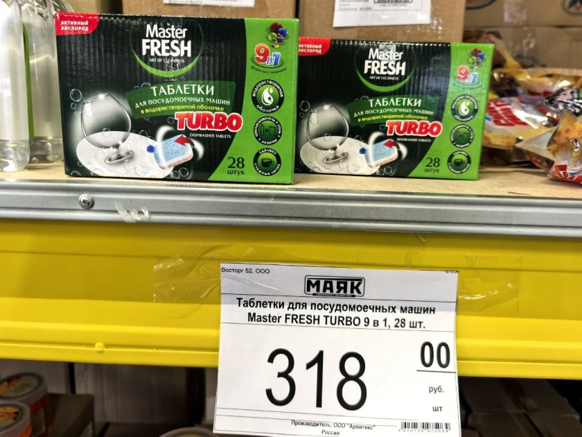 Первым, что привлекло мое внимание, были таблетки для посудомоечной машины – отличное решение для поддержания чистоты и блеска вашей посуды. Цена всего 318 рублей.