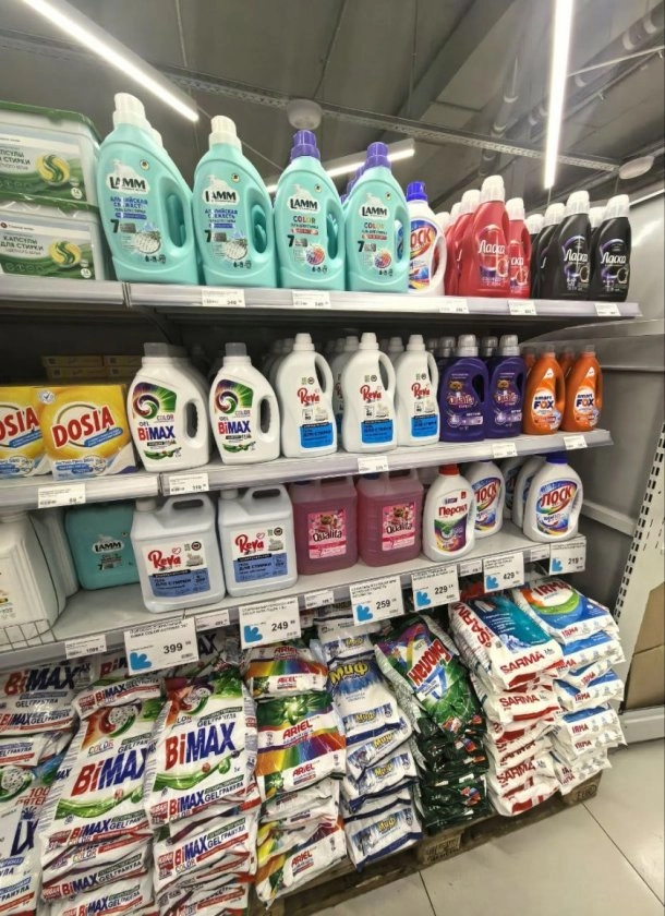 А сколько здесь порошков и гелей для стирки! Глаза разбегаются от такого выбора.