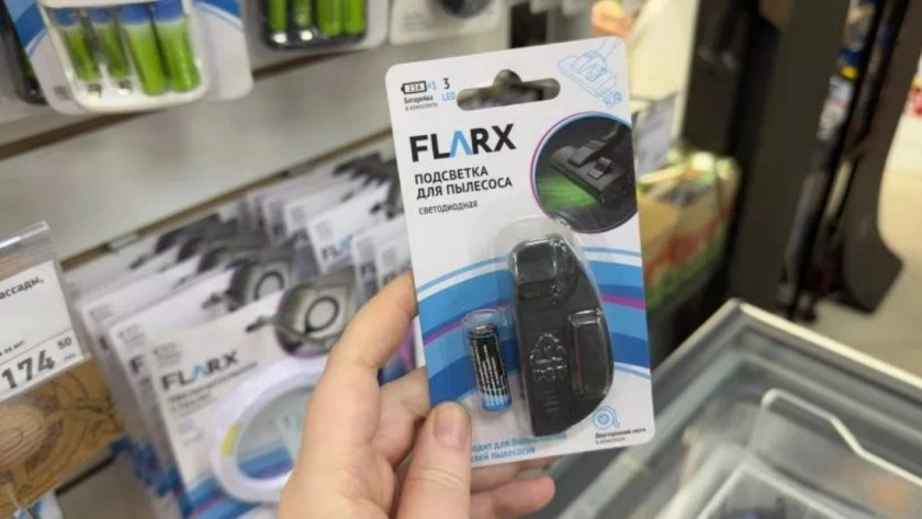 Подсветка для пылесоса крепится на трубу и делает уборку под мебелью наглядной. Свет яркий, но не слепит, работает от батарейки. Теперь все закатившиеся предметы и скопившаяся пыль хорошо видны.