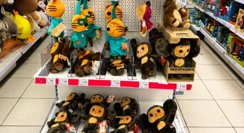А сколько Чебурашек! Сейчас в моде советские мультфильмы, поэтому и игрушки делают такими же добрыми и милыми