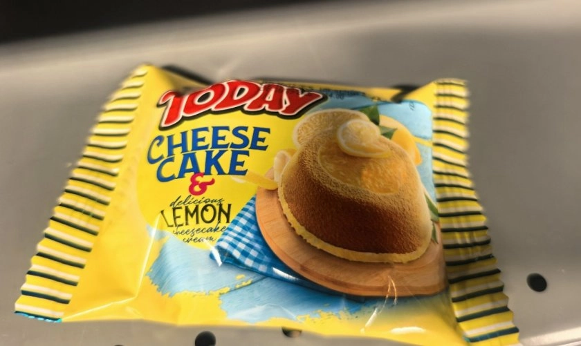 Следующее, на что я обратила внимание, – «TODAY CHEESE CAKE» (Тудэй Чиз Кейк). Пирожное с ярким цитрусовым вкусом прекрасно утоляет голод и сразу поднимает настроение.