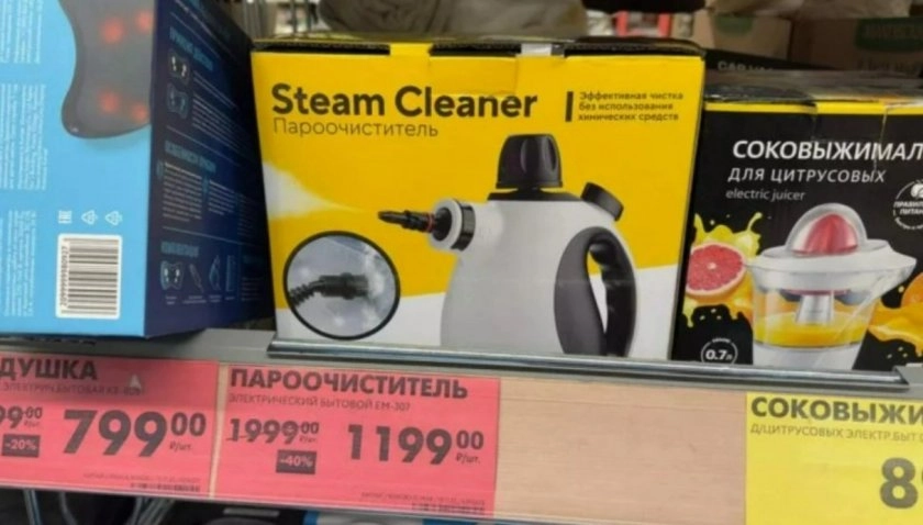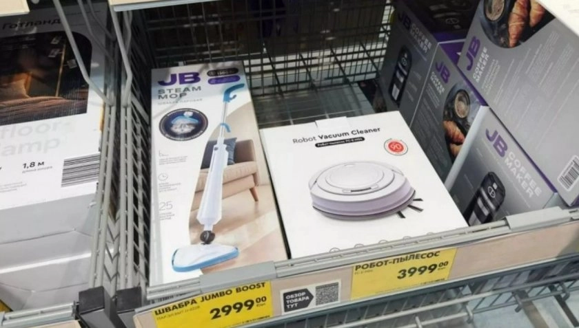 Рядом стояла паровая швабра. Удобно, что она одновременно моет и дезинфицирует полы. Сменные насадки подходят для разных типов покрытий. В ассортименте также заметила робот-пылесос — для тех, кто предпочитает автоматизацию.