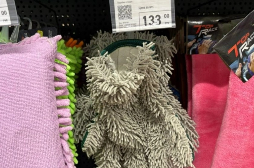 Рядом лежала двусторонняя перчатка для мытья и полировки за 133 рубля. Удобная штука для быстрой уборки.