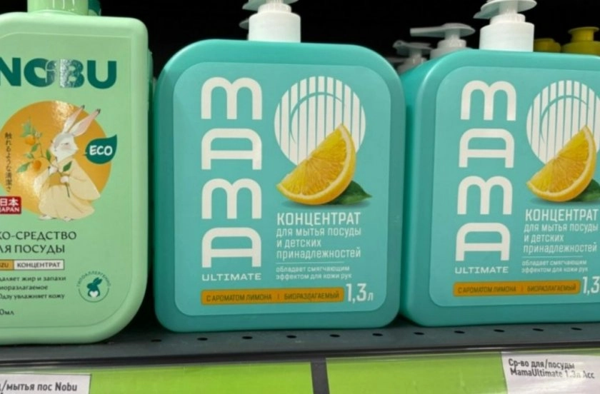 В отделе с бытовой химией обратила внимание на концентрат для мытья посуды. Объём — 1,3 литра, цена — 199 рублей. Упаковка внушительная, хватит надолго.
