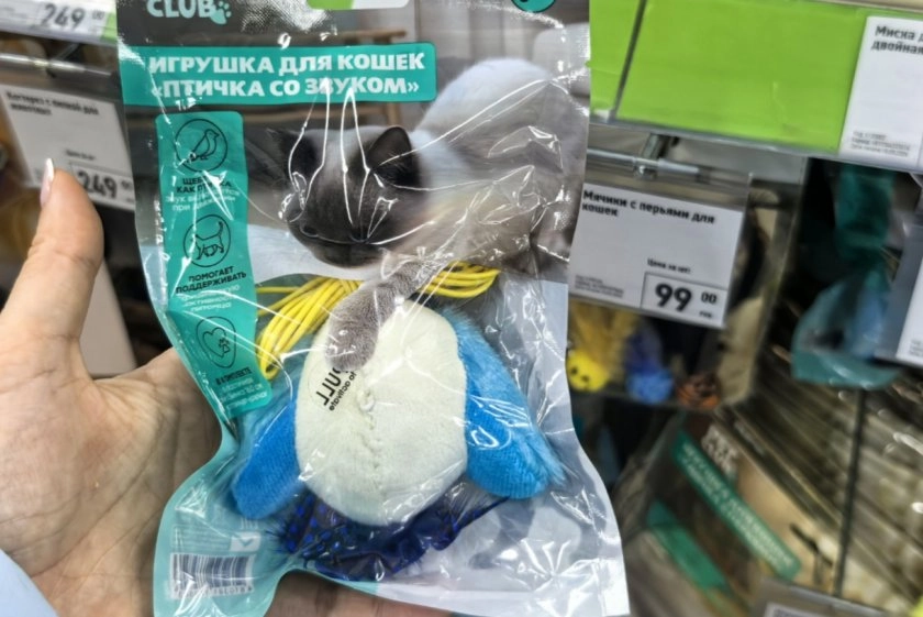 Первое, на что я обратила внимание, птичка со звуком. Эта игрушка привлечет внимание вашего котика реалистичным звуком, имитирующим писк птицы.