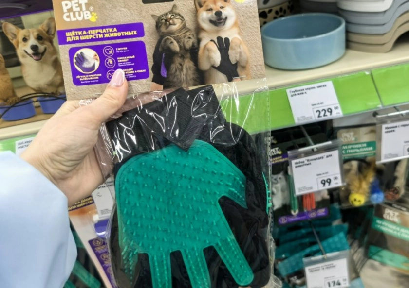 Настоящей находкой для владельцев длинношерстных питомцев - стала перчатка. Она облегчает процесс вычесывания, удаляя отмершую шерсть и одновременно массируя кожу животного, что способствует лучшему кровообращению.