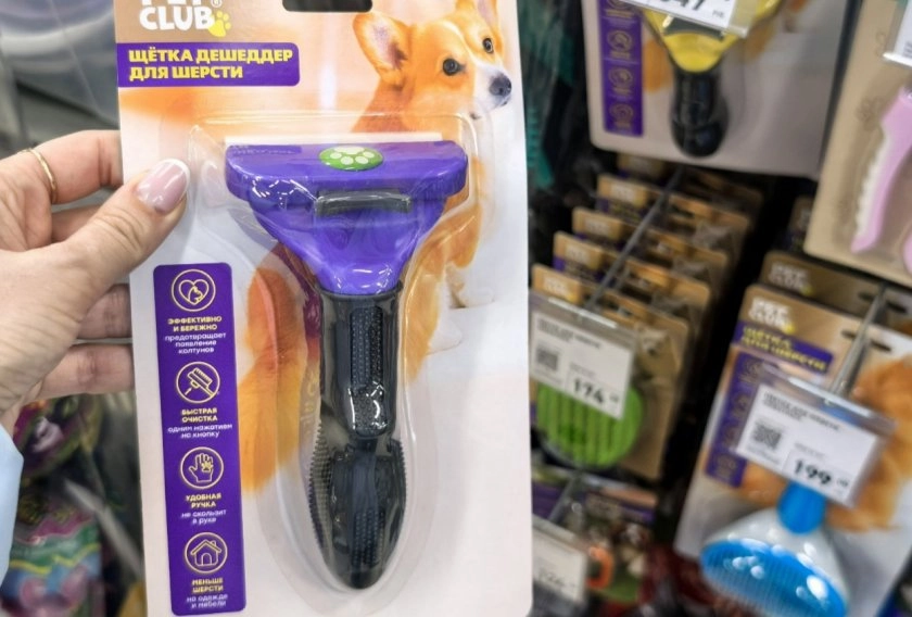 Для поддержания красоты и здоровья шерсти питомца я взяла щетку-дешеддер. Этот инструмент эффективно удаляет отмершую шерсть, предотвращая образование колтунов и уменьшая линьку.