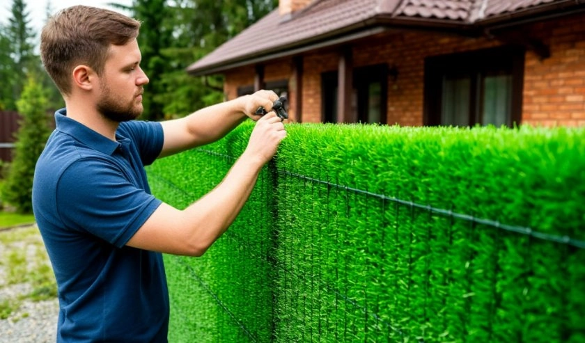 В отличие от живой изгороди, которая растёт несколько лет, требует стрижки, полива и подкормки, искусственный газон даёт готовый зелёный забор сразу после монтажа. При этом он не осыпается осенью и не голый зимой, отмечают строители из компании Defencen.