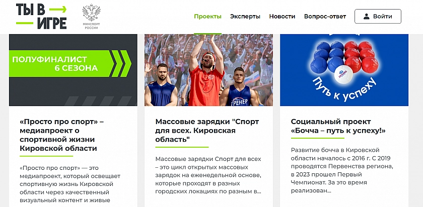 Пять лет житель Кирово-Чепецка Дмитрий Жданов развивает проект "Бочча: путь к успеху" по тренировкам паралимпийского вида спорта для детей и взрослых с ограниченными возможностями. Тренер и спортсмен участвует в проекте "Ты в игре" - всероссийский конкурс проектов в сфере любительского спорта.