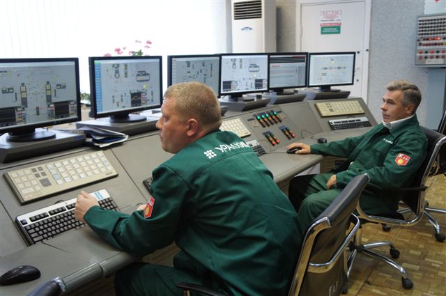 Следующим этапом стал цех азотной кислоты. Руслан Кибешев, начальник подразделения, познакомил журналистов с процессом производства, рассказал об агрегатах, затем провел гостей в машинный зал и в коридор управления аппаратами ГТТ.