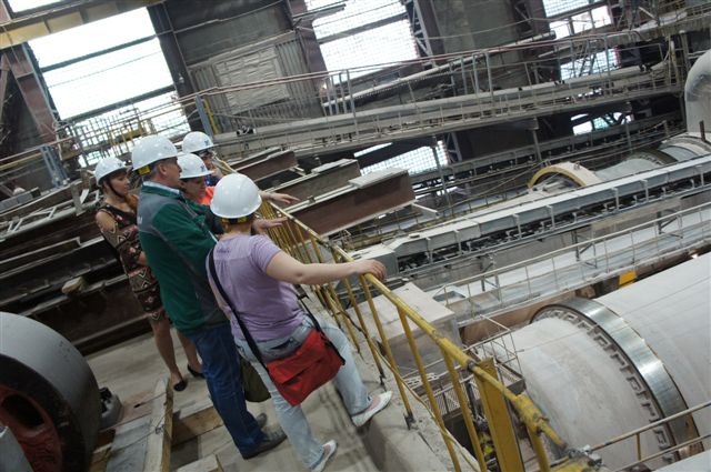 Первым пунктом экскурсии стало производство аммиака. Начальник цеха Вячеслав Скляров показал гостям завода тренажерный класс, где операторы отрабатывают навыки ведения производственного процесса; отремонтированные бытовые помещения, центральный пульт управления, компрессорную и печь риформинга.